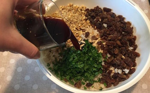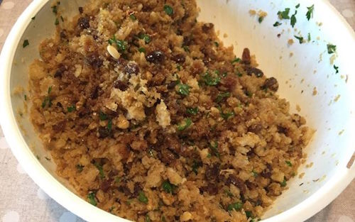 l’uvetta ammollata e strizzata, il prezzemolo e il sale |