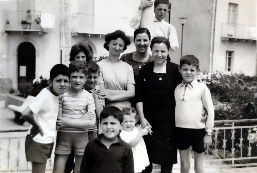 Sant'Andrea di Conza. Inizi anni 60 una bellissima foto che ci regala Andrea Vallario. In primo piano Leo il bibliotecario, si riconosce >Zia Rosetta, Cosè e....