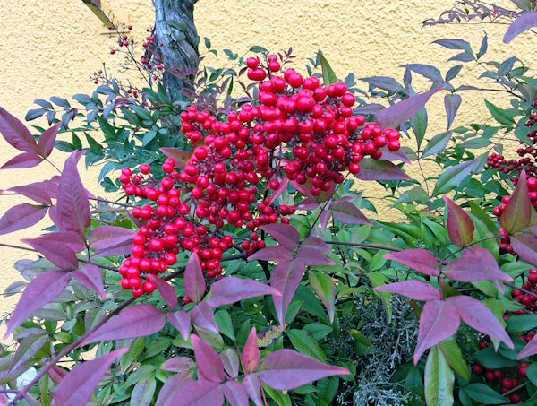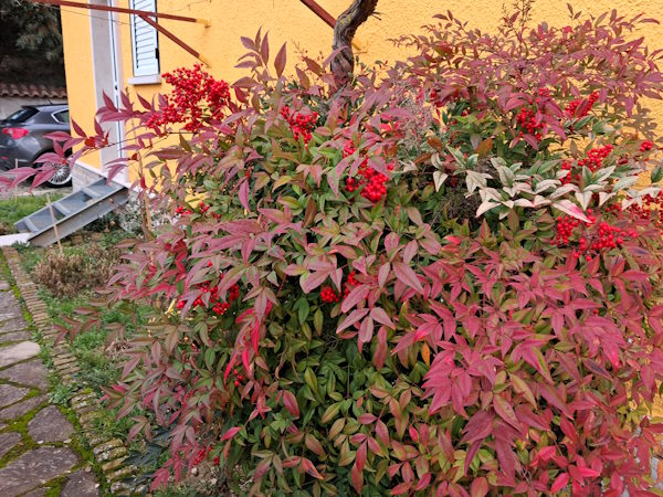 La pianta nella foto è la Nandina domestica, conosciuta anche come bambù sacro o bambù del paradiso. Una pianta bellissima, facile da coltivare....